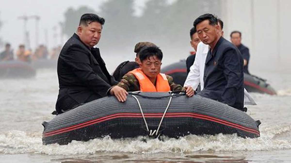 Saat banjir terjadi, Kim Jong Un disebut langsung turun tangan memimpin operasi penyelamatan menggunakan 10 helikopter dan sekoci militer.
